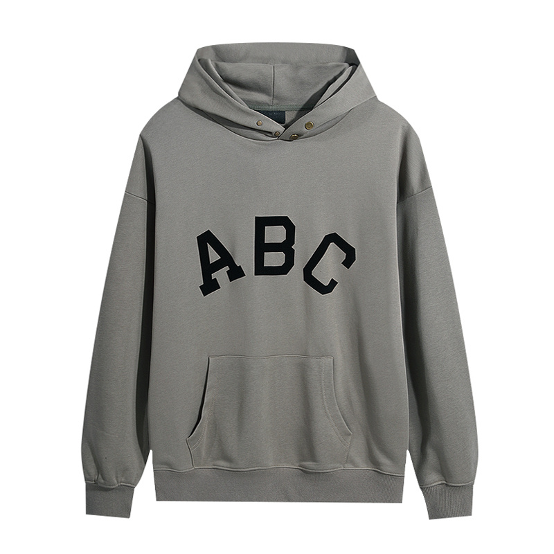 Серо-зеленое худи от бренда Fear of God с семеркой и принтом "АВС"