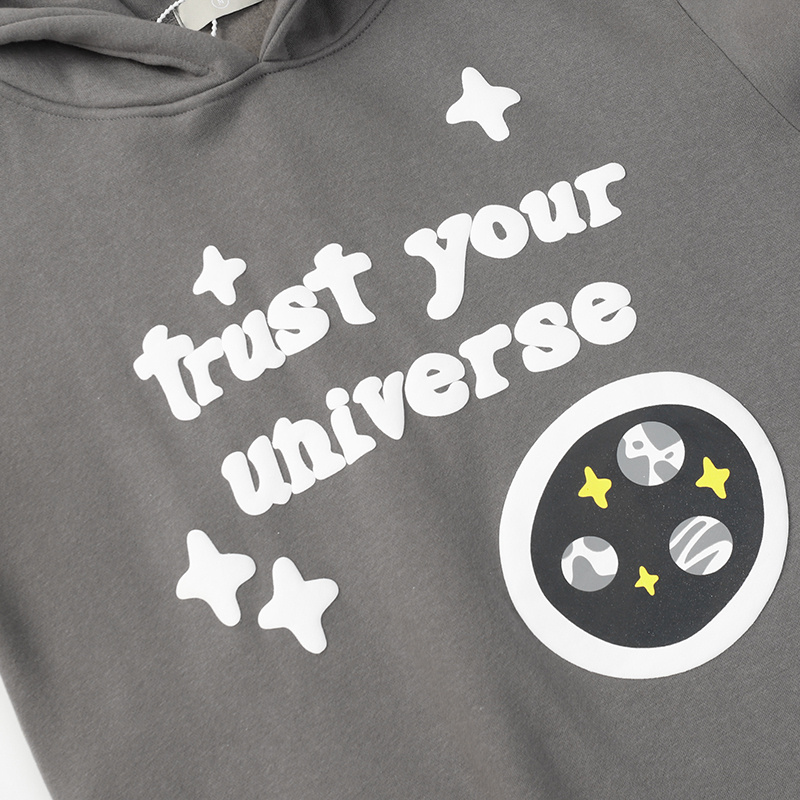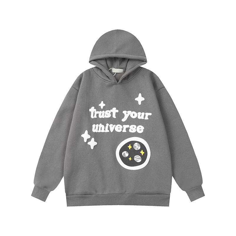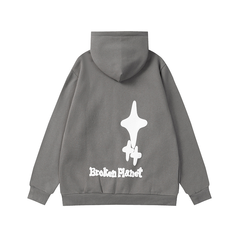 Серое худи Broken Planet долговечное с принтом и надписью спереди