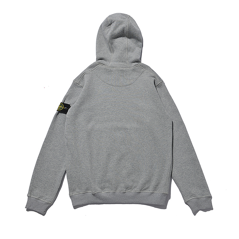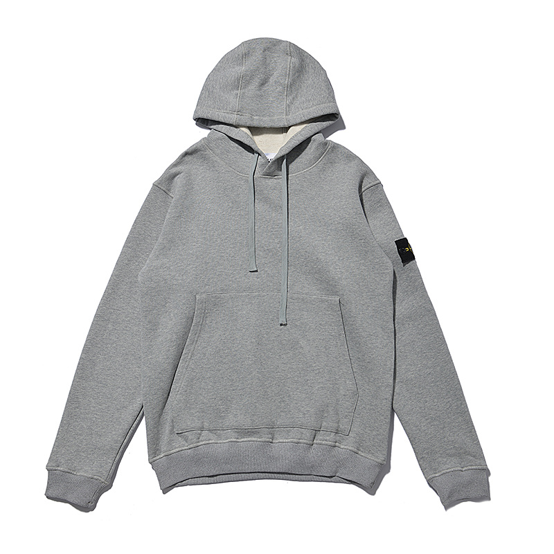 Серое объёмное с начёсом худи Stone Island и завязками на капюшоне