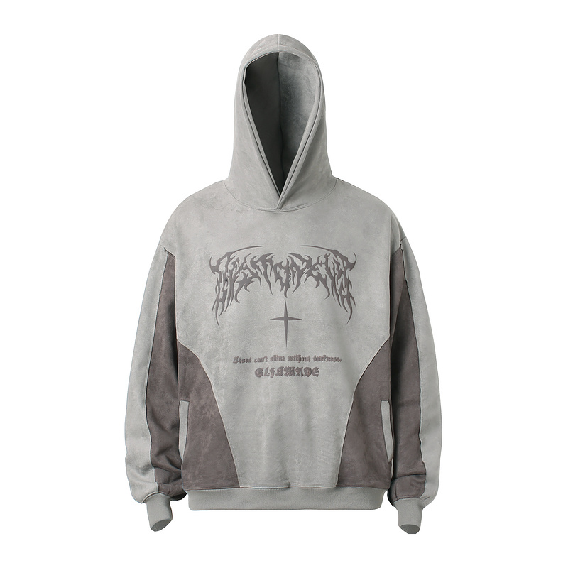 Серое замшевое худи унисекс GLFS с объёмным капюшоном и карманами