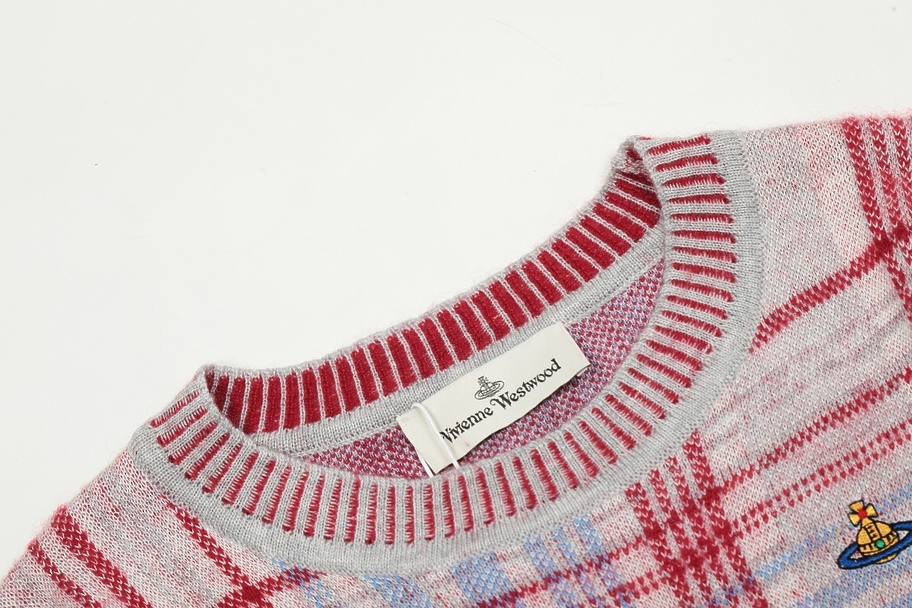 Серого цвета свитер в красную клетку Vivienne West Wood