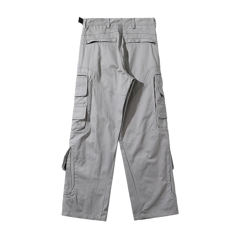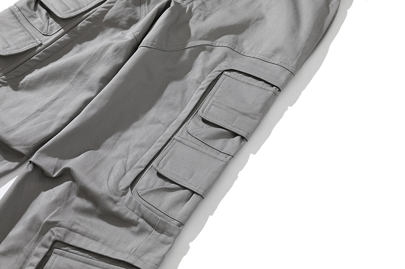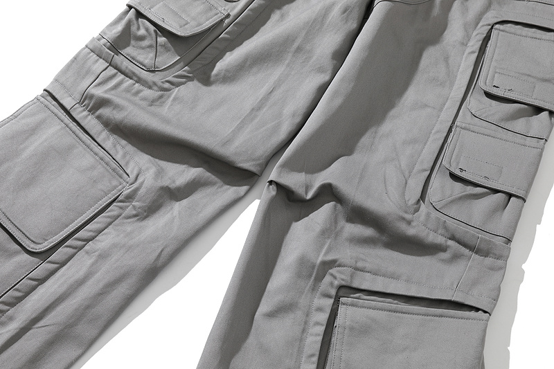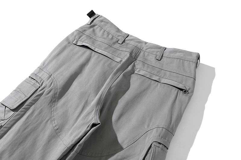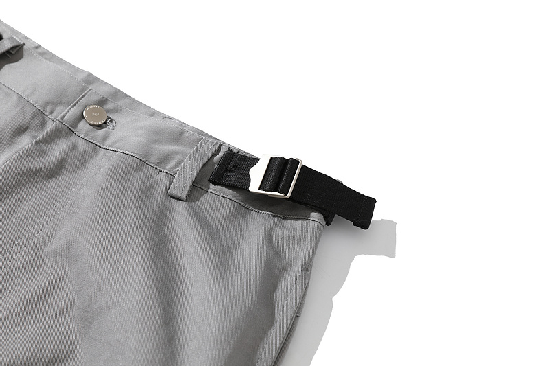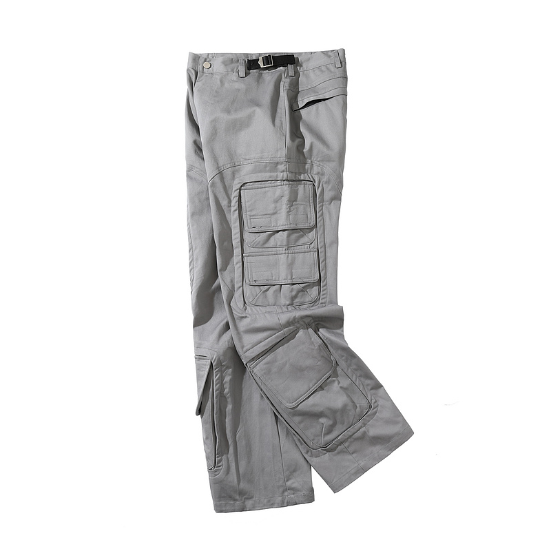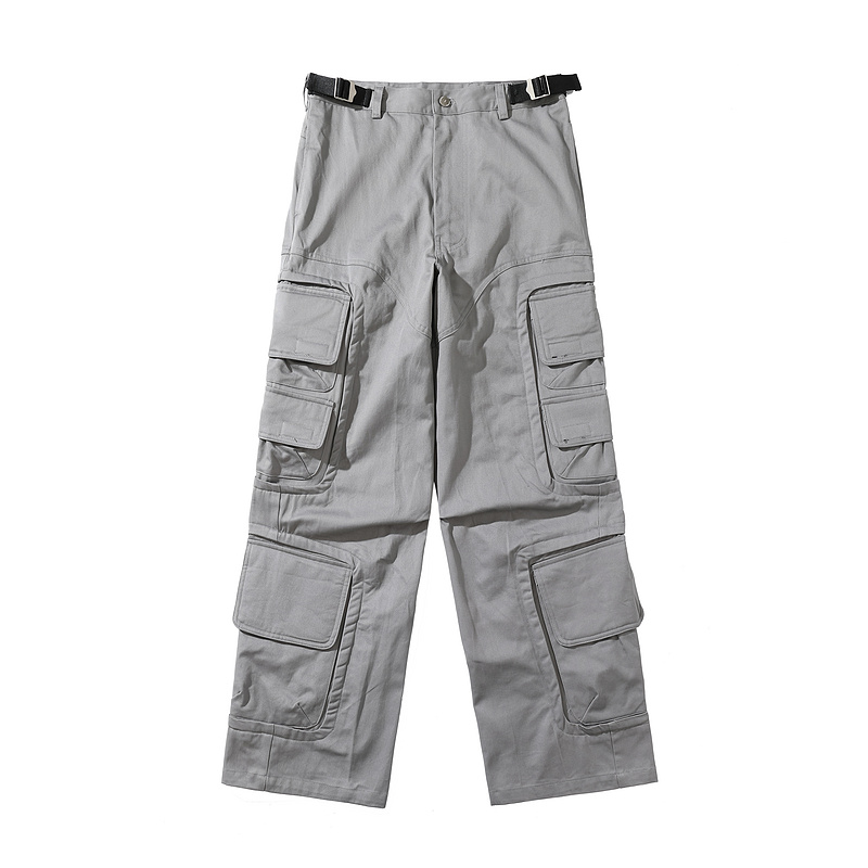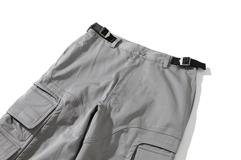 Серые широкие с поясом и нашитыми по бокам карманами брюки