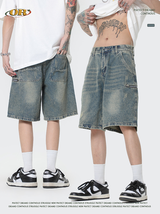 Голубые шорты фирмы OREETA с карманом на молнии сбоку