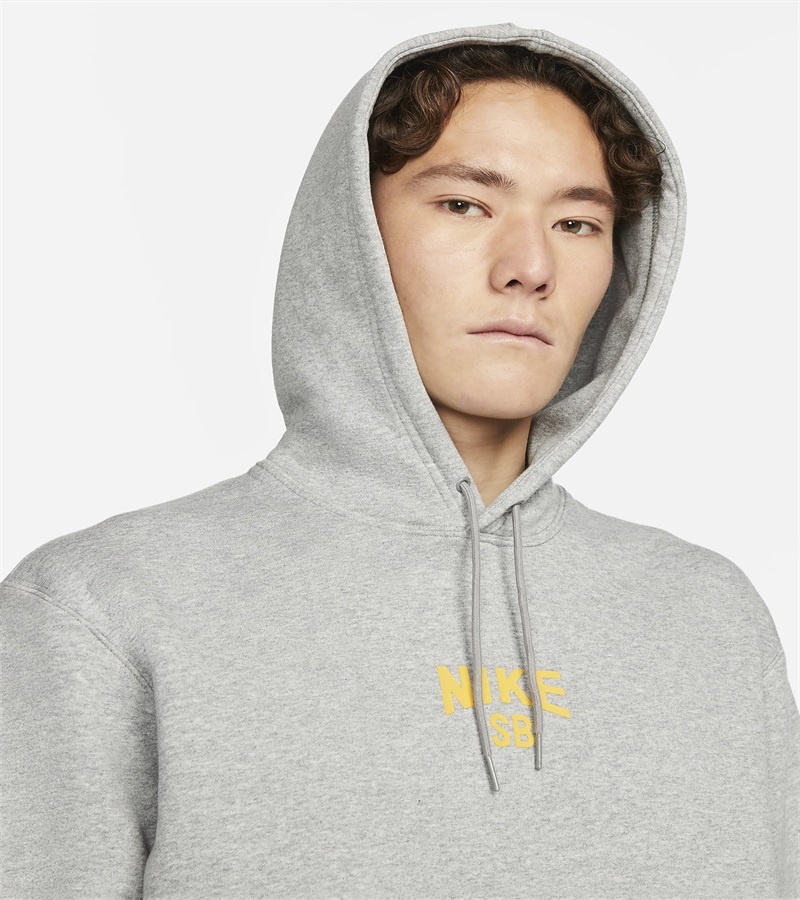 Серый худи Nike SB с жёлтым принтом га груди и чёрным на спине