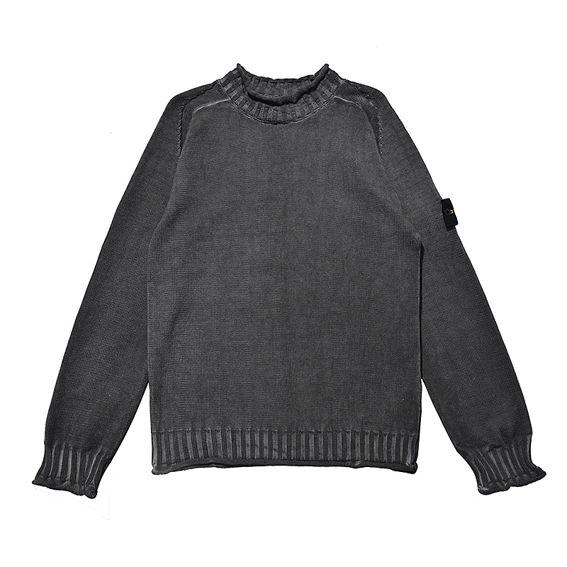 Серый вязаный свитер с нашивкой на рукаве Stone Island