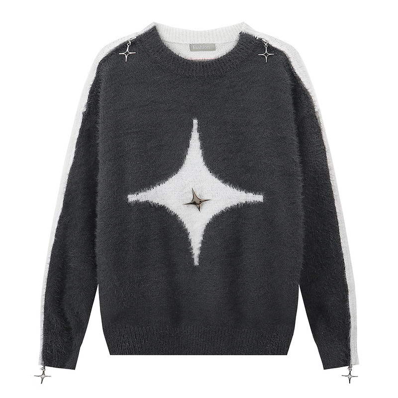 Серый запоминающийся свитер Fashion с подвесками на рукавах