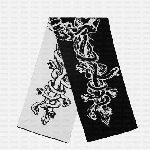 Шарф чёрно-белый с рисунками "Змеи" широкий и мягкий