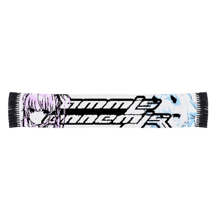 Шарф с надписью и портретом девушки в стиле аниме черно-белый