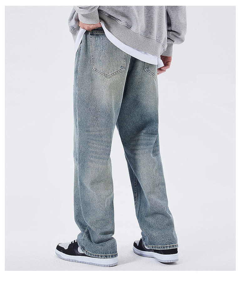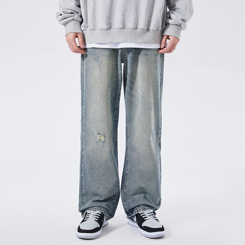 Широкие Locketomy синие с потёртостями разрезом джинсы