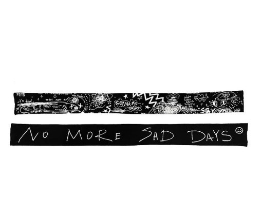 Широкий мягкий чёрный шарф с рисунком и надписью двухсторонний