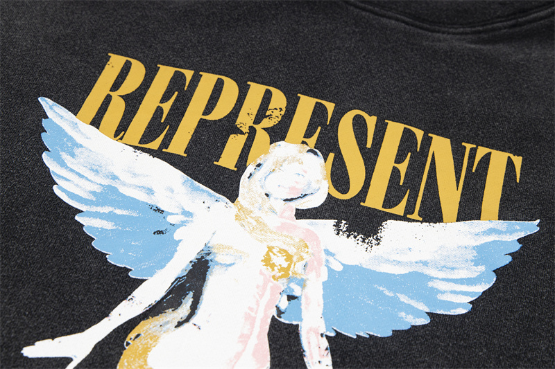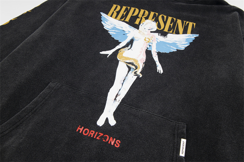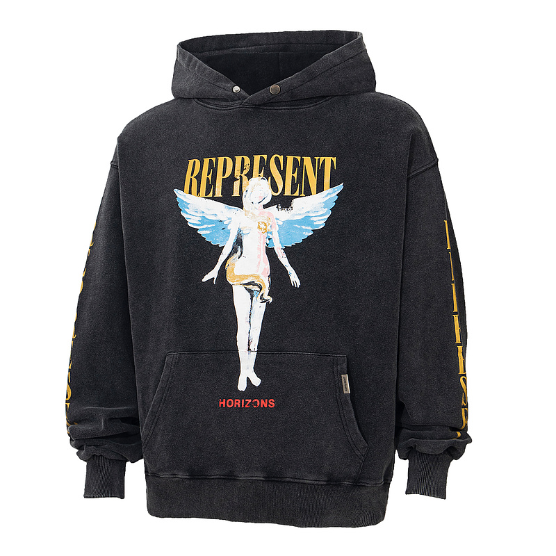 Широкого кроя чёрное с принтом "Ангел" худи от бренда Represent