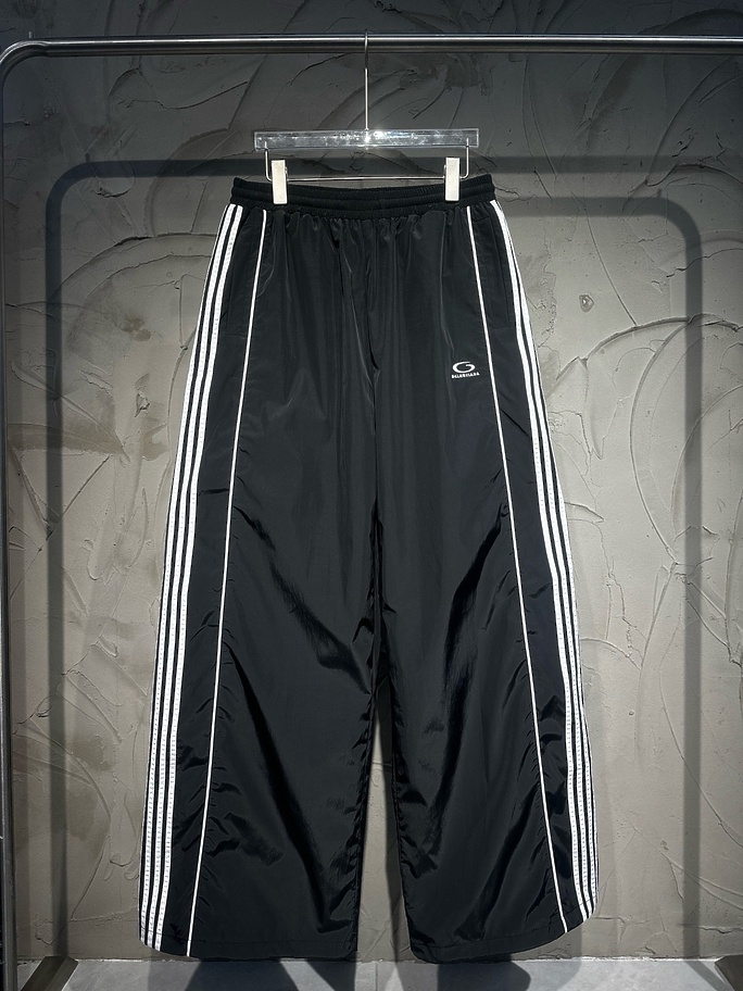 Штаны Balenciaga в черном цвете с белыми лампасами и лого бренда