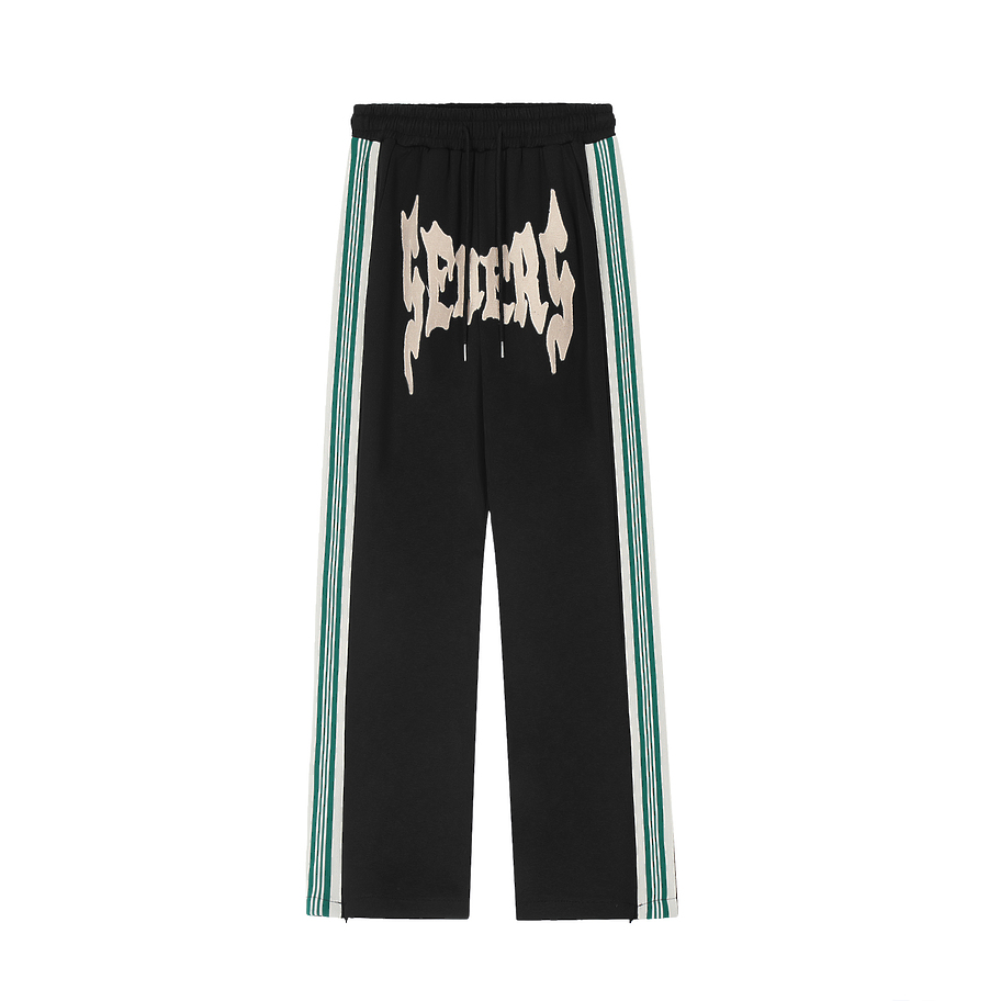 Стильные черные штаны от SEVERS с брендовой белой нашивкой