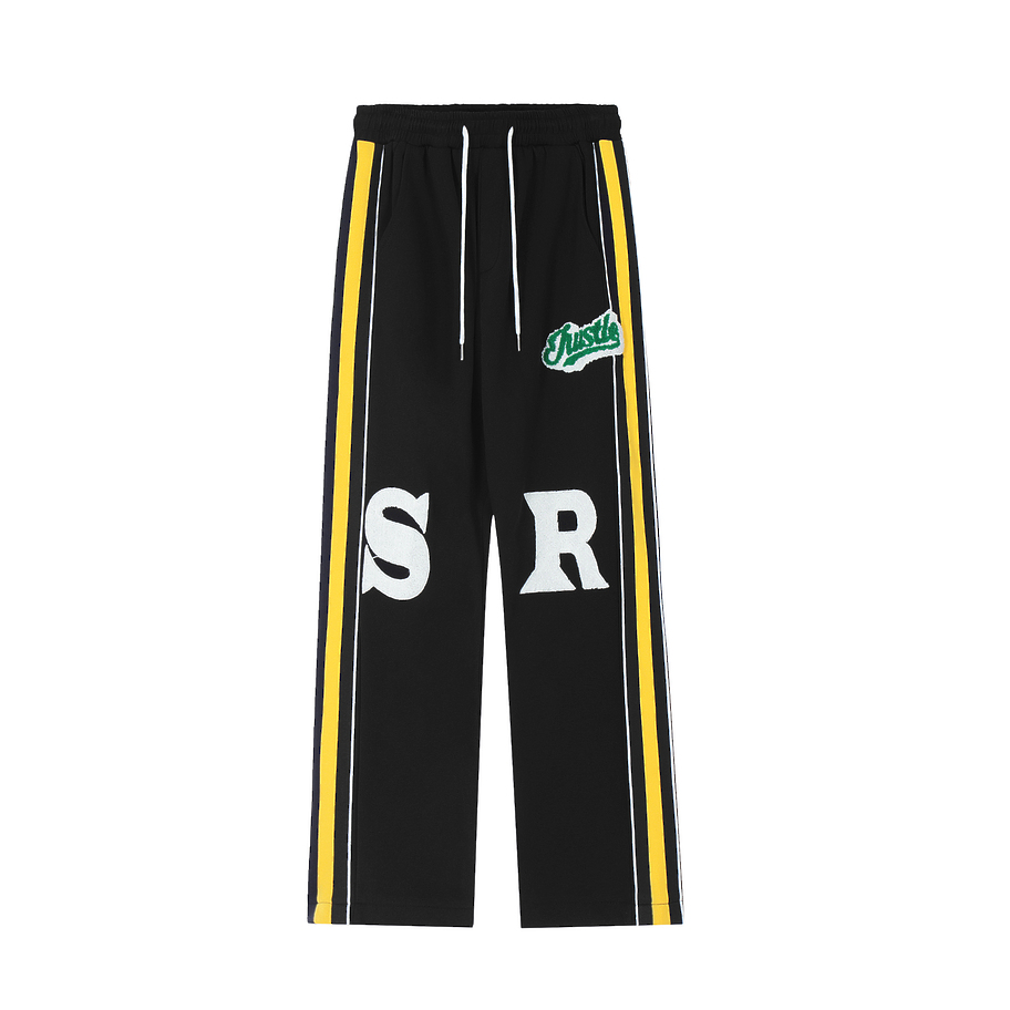 Стильные черные штаны SEVERS с крупными буквами на коленях S и R