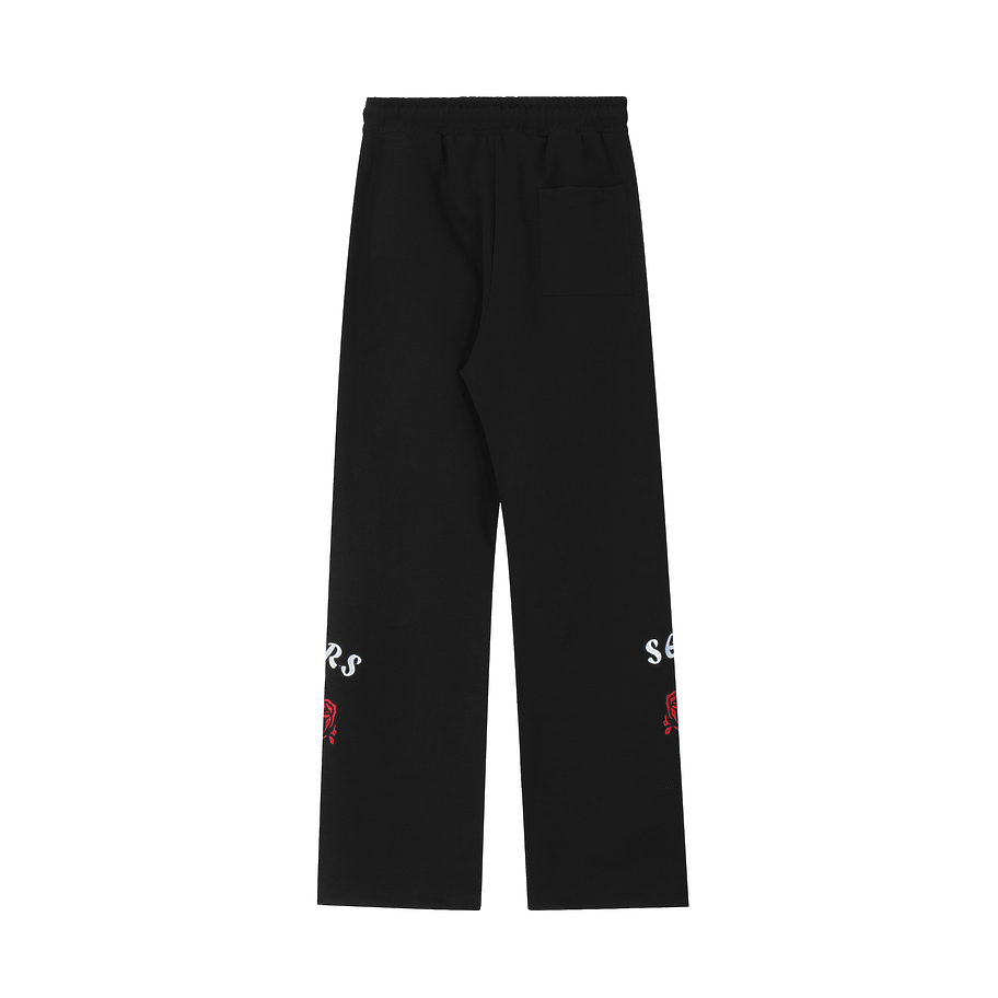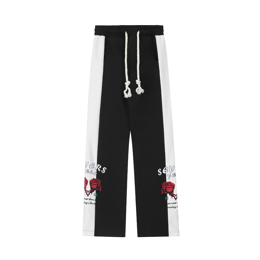 Стильные черные штаны SEVERS с вышитыми розами на лампасах ниже колен