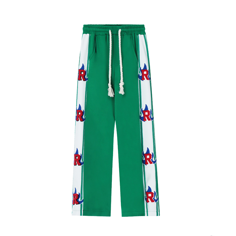 Свободного кроя зеленые штаны SEVERS с вышивкой в боковых вставках