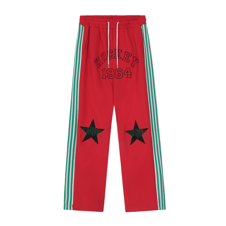 Красные штаны SEVERS с лампасами и надписью спереди HOCKEY 1964