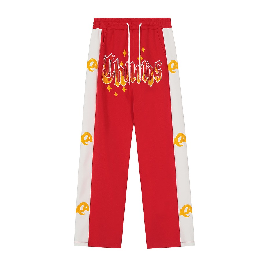 Стильные красные штаны SEVERS c яркой надписью спереди Churros