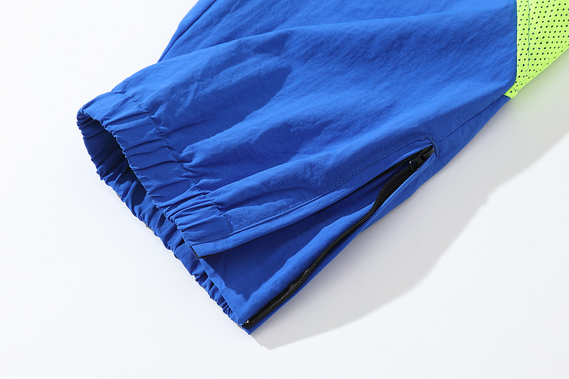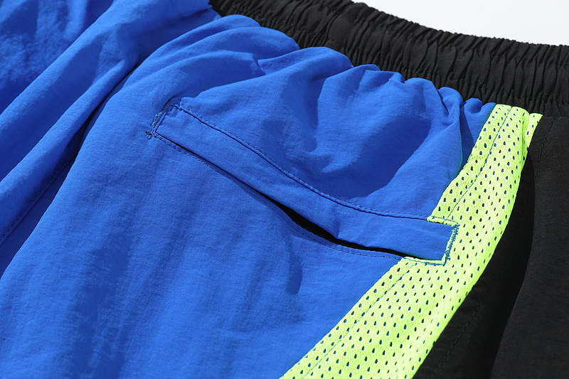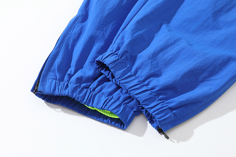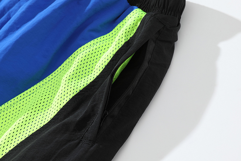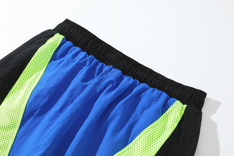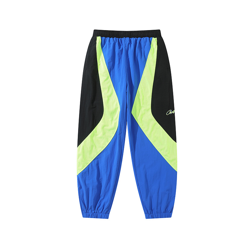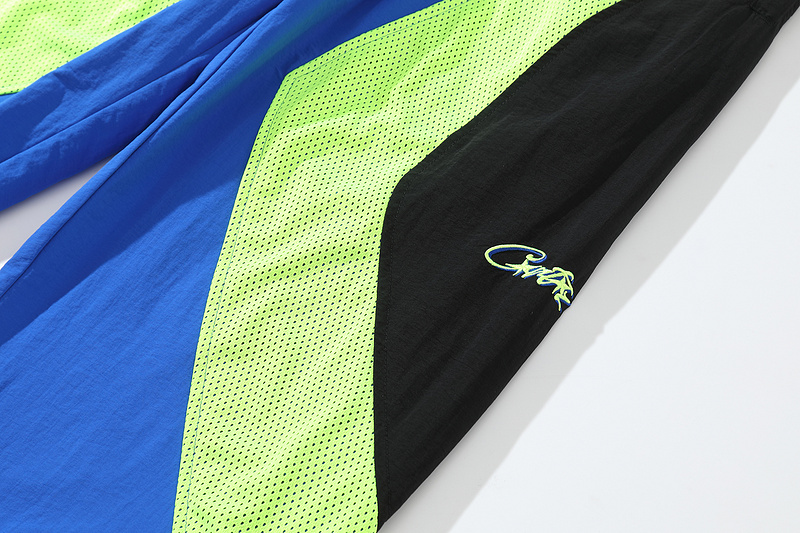 Сине-салатовые сетчатые штаны Corteiz с молнией внизу сшиты на резинке