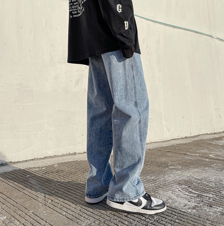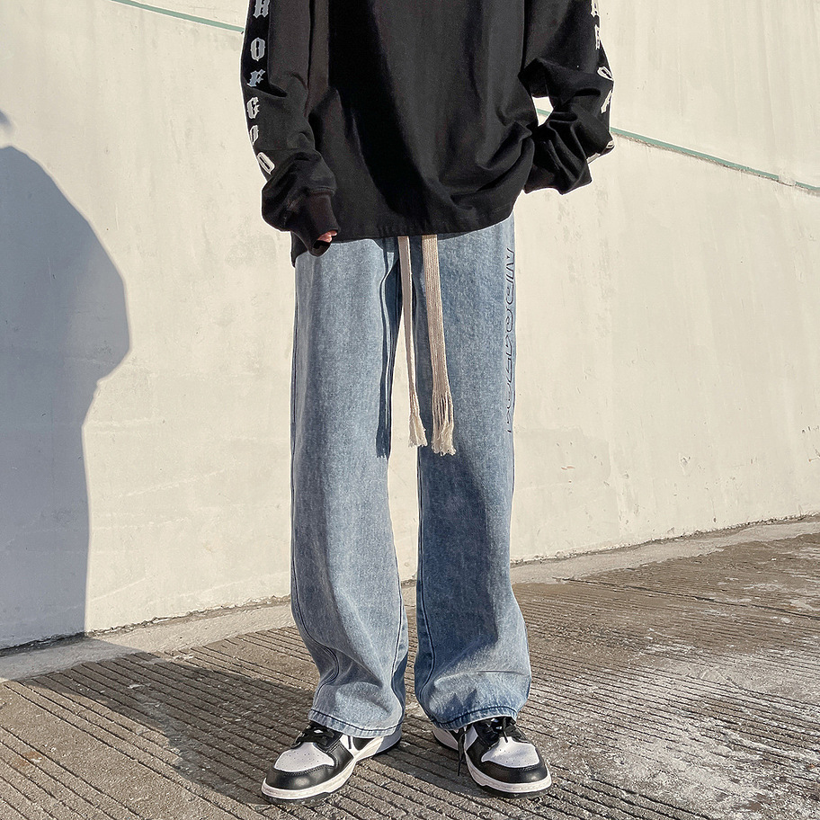 Синие широкие джинсы прямого кроя от Locketomy с надписью сбоку