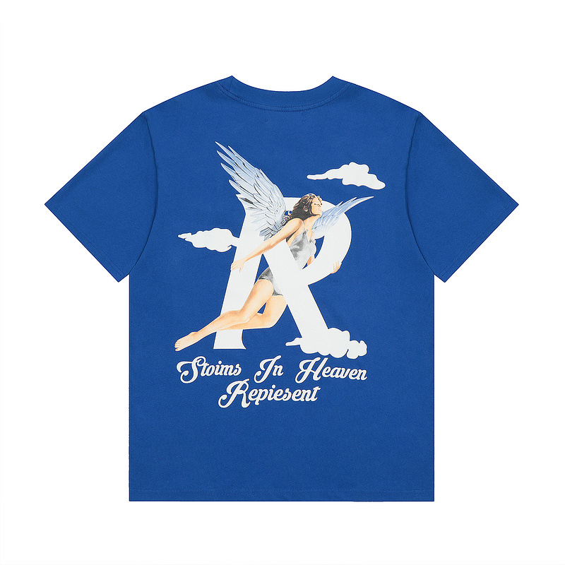 Синяя футболка REPRESENT с рисунком "Ангел и буква R"
