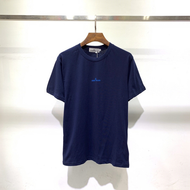Синяя футболка Stone Island с отражающей надписью на спине