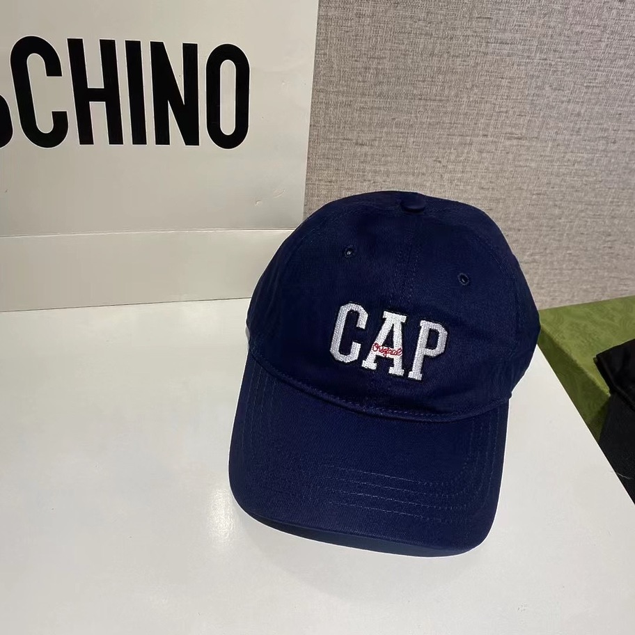 Синяя с вышитой надписью по центру "CAP" хлопковая бейсболка