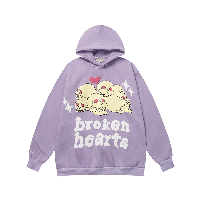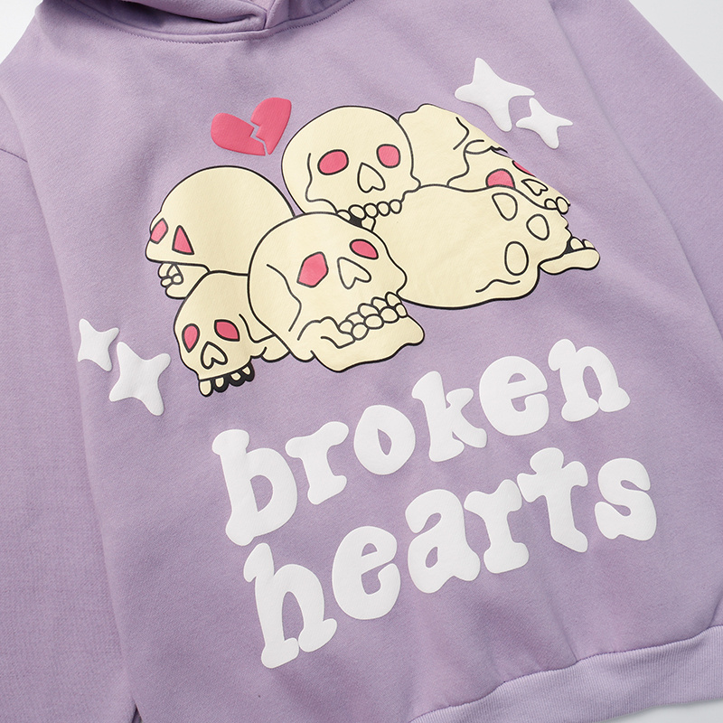 Сиреневое худи Broken Planet с карманами и рисунком "Разбитые сердца"