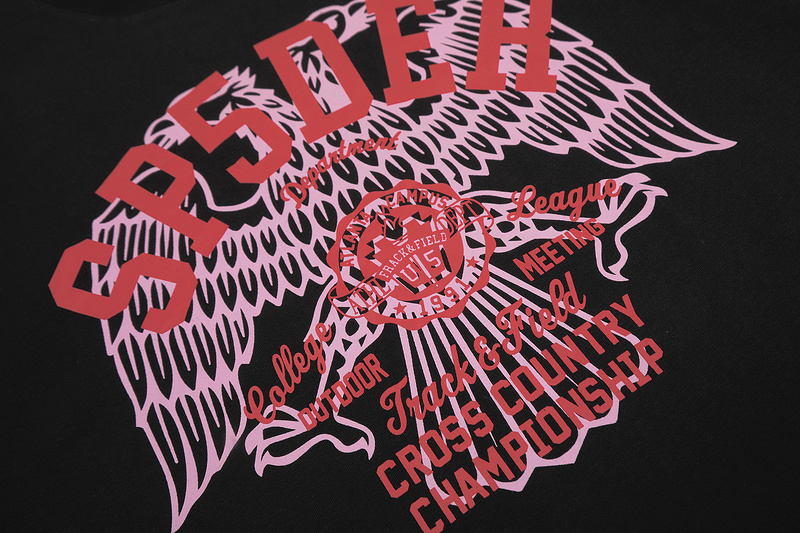 Sp5der футболка хлопковая в черном цвете с принтом на груди выполнена в характерной для бренда эстетике уличной моды. Основа — натуральный хлопок высокой плотности. Полотно матовое, гладкое, без блеска. Структура ткани плотная, но не грубая, обеспечивает комфорт в течение дня. Черный цвет насыщенный, устойчивый к выцветанию. Принт размещен на груди, выполнен в розово-белой гамме. Линии четкие, контуры не расплываются даже при длительной носке. Поверхность принта мягкая, не трескается и не отслаивается после стирки. Фасон прямой. Посадка свободная, но не мешковатая.
