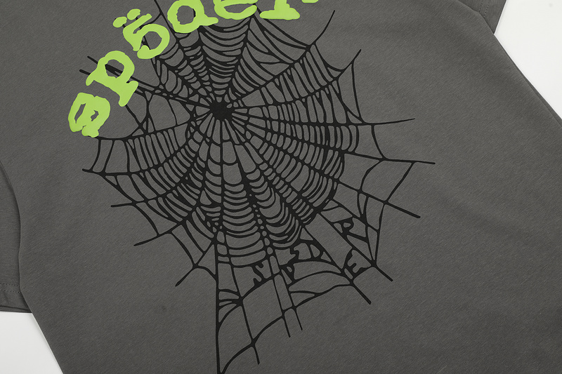 Sp5der футболка в сером цвете с принтом и надписью на груди