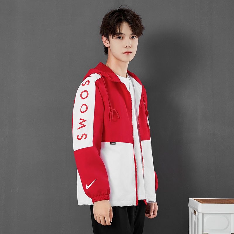 Спортивная красно-белая Nike с надписью на рукаве "Shows" ветровка