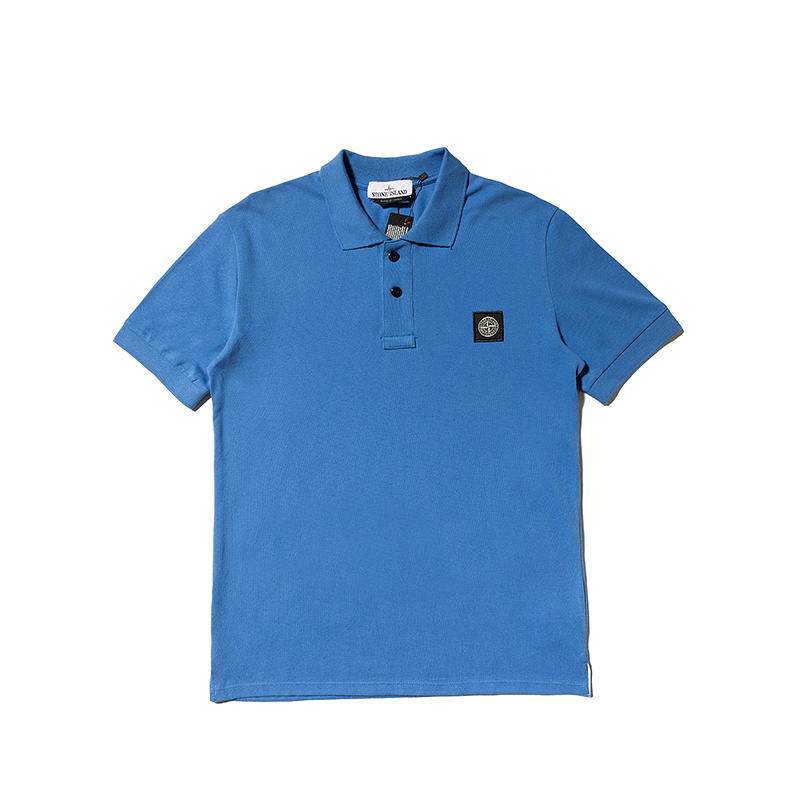 Спортивная поло-футболка Stone Island синяя с разрезами по бокам