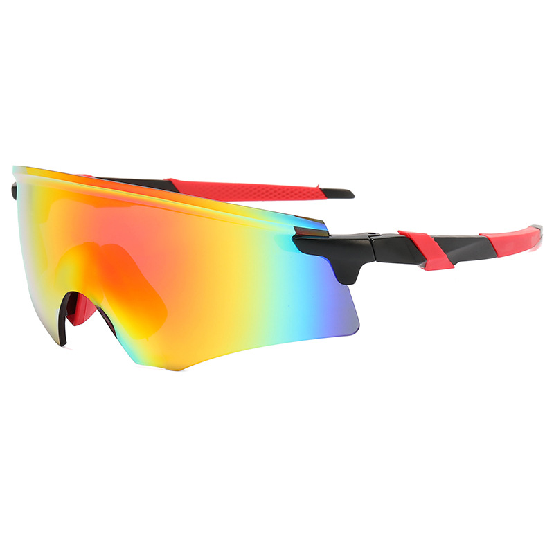 Спортивные очки с чёрно-красной оправой и радужной линзой
