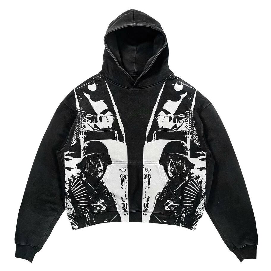 Средней длины чёрное Worksofrex со стильным принтом худи