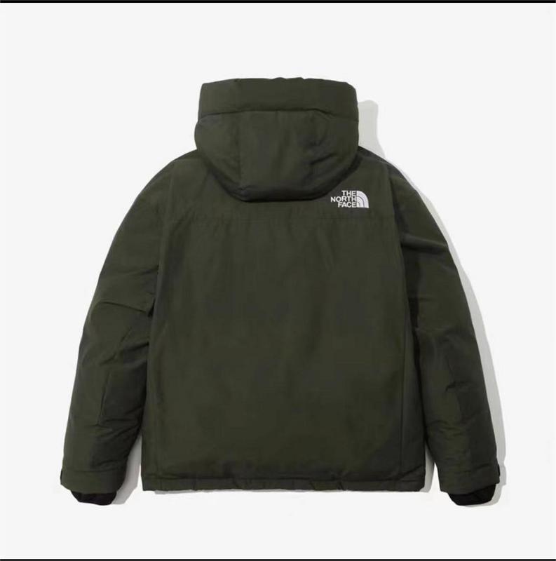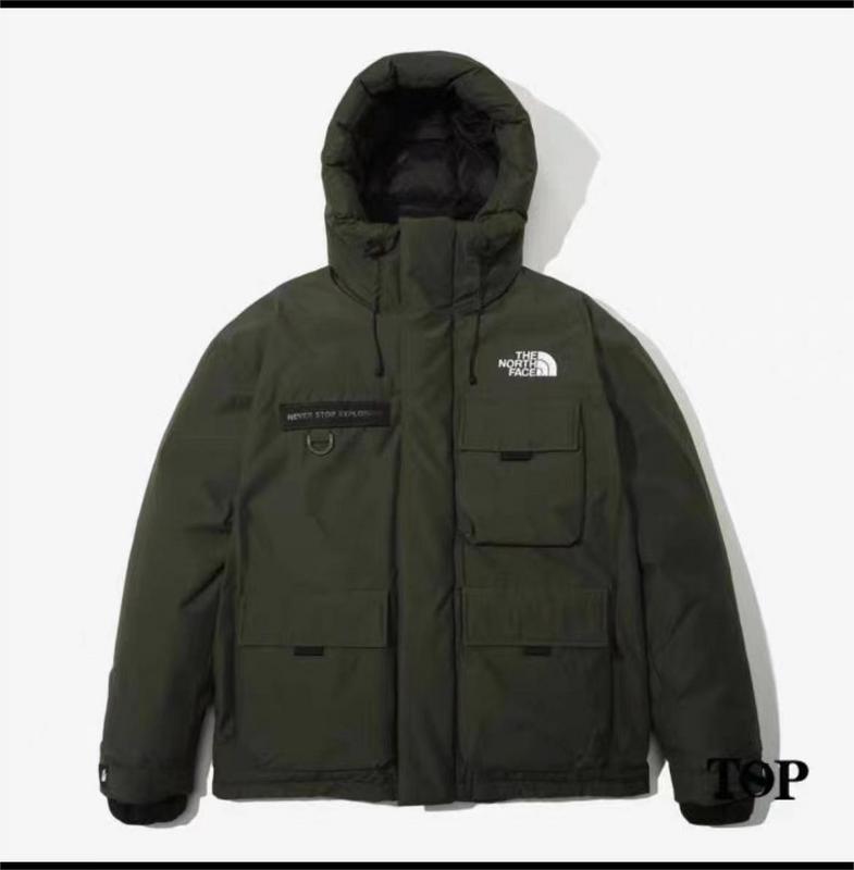 Средней длины тёмно-зелёный пуховик The North Face с 3-мя карманами