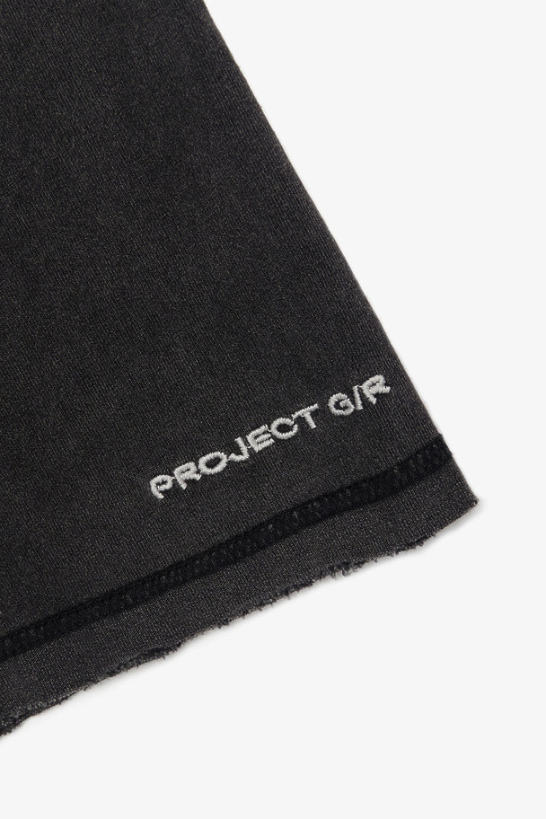Выполнена из плотного хлопка с эффектом варки (garment dyed), футболка имеет грубую фактуру и чёткие швы. Oversize-крой и спущенные плечи подчёркивают расслабленный, но мощный силуэт. Минималистичный логотип Project G/R на рукаве дополняет образ, не перегружая его.