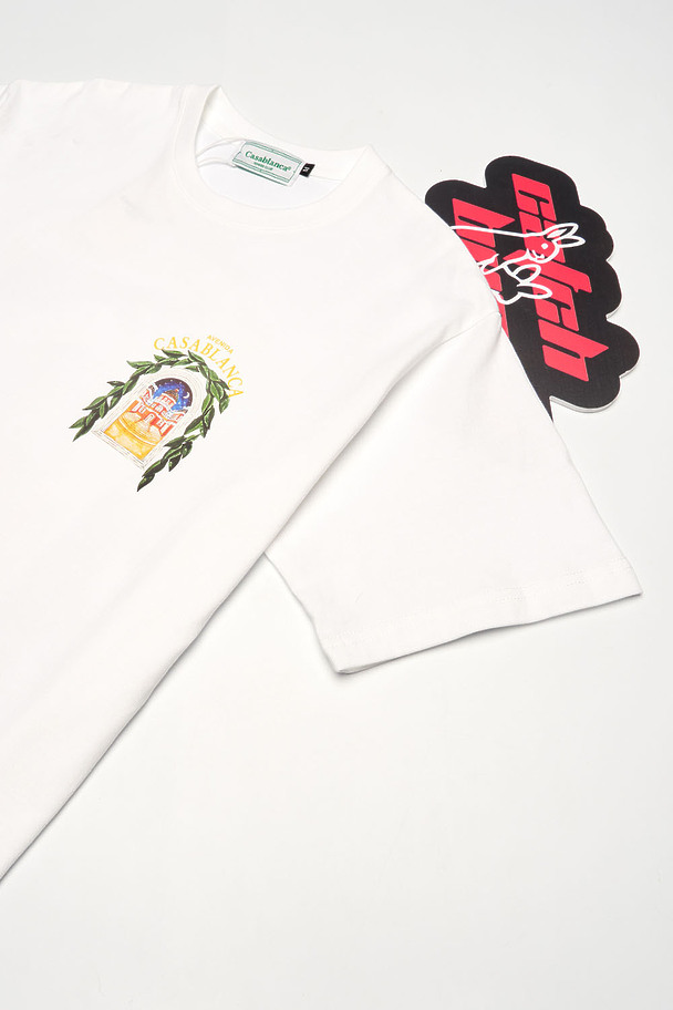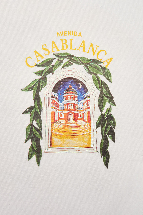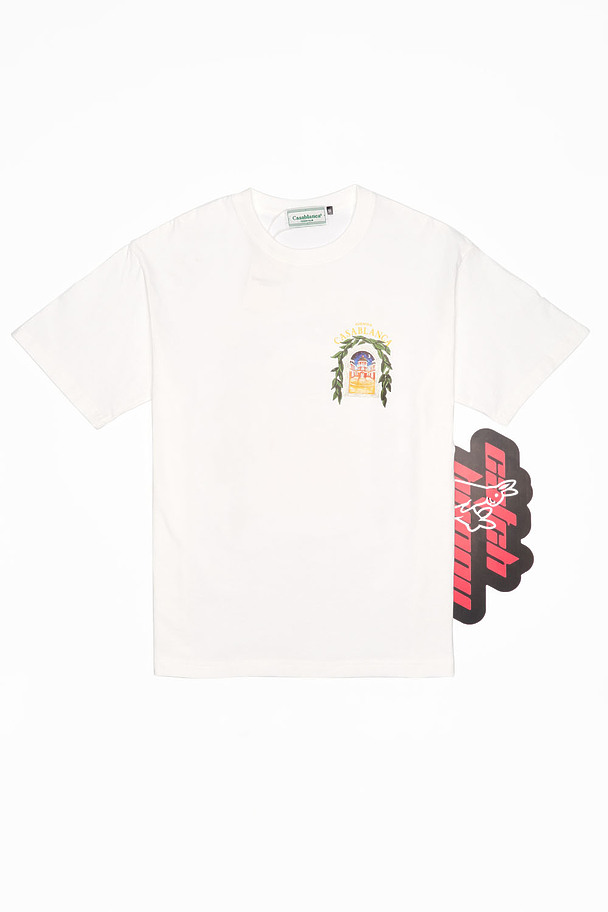 Футболка Casablanca — это воплощение лёгкости, эстетики и расслабленного luxury. На груди — изящный принт с архитектурным мотивом, зеленью и аркой, отсылающий к лету на побережье, апельсиновым рощам и духу отдыха без спешки. Подпись Casa Blanca Tennis Club усиливает атмосферу элитарного досуга, где стиль важнее очков.