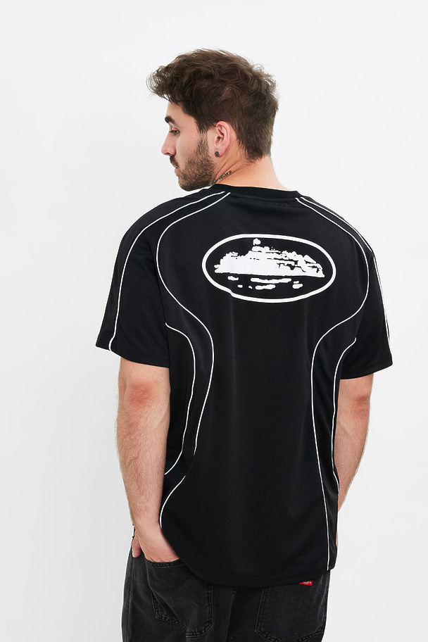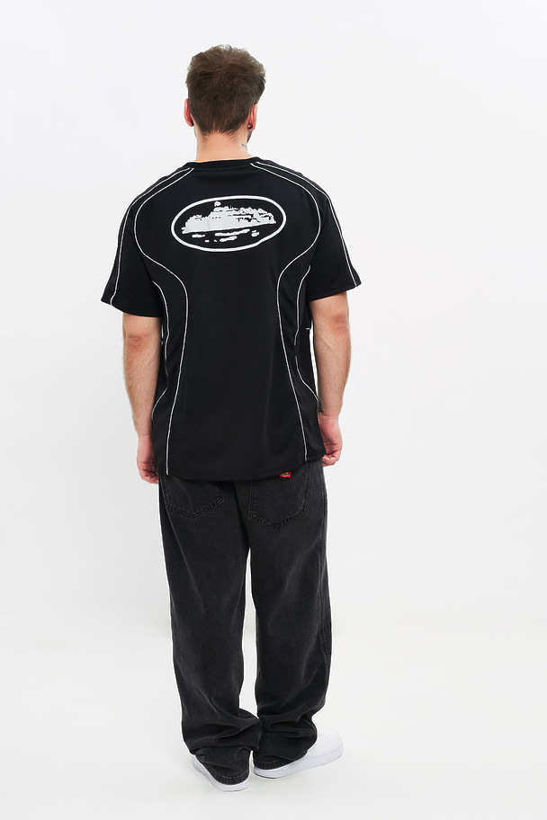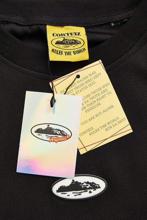 Футболка Corteiz чёрного цвета с рефлективными полосами в наличии
