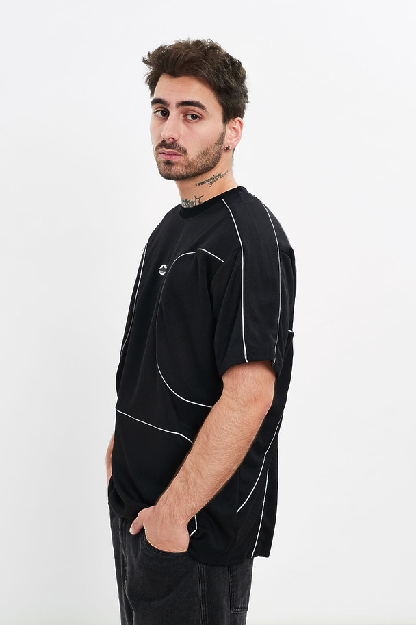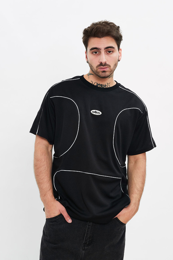 Чёрная футболка Corteiz в tech-эстетике — это сочный микс уличного минимализма и функционального дизайна. Модель выполнена из дышащего трикотажа с добавлением эластана, за счёт чего комфортно садится по фигуре. Контрастные белые строчки анатомически подчёркивают силуэт и визуально вытягивают пропорции, а брендированный овал на груди завершает образ акцентной деталью.