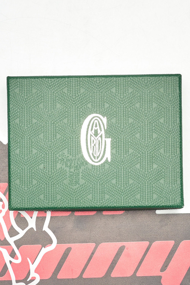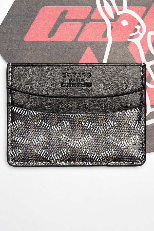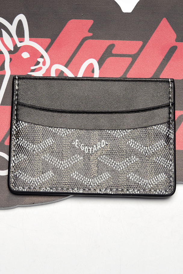 Картхолдер чёрный Goyard в наличии. Компактный, строгий, с чёткой геометрией. Поверхность — фирменный узор в серо-графитовой гамме. Контраст между матовой текстурой и глянцем печати. Три внешних кармана с каждой стороны, один центральный отсек. Формат подходит под карты, визитки, купюры. Линии ровные, обработка краёв аккуратная. Углы усилены, не заламываются при носке.