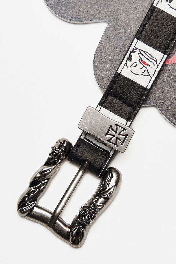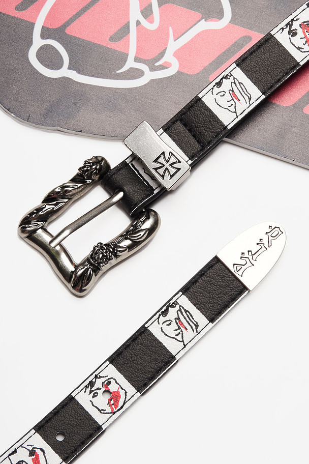 Ремень Enfants Riches Deprimes в наличии на складе. Глубокий чёрный цвет без блеска. Поверхность слегка зернистая, мягкая на ощупь. Пряжка прямоугольная, выполнена из плотного металла с матовой отделкой. Контур строгий, без скруглений. Углы чёткие, геометрия выверена. Нитка по краю ремня ровная, строчка без пропусков. Логотип бренда размещён на внутренней стороне, ближе к пряжке.