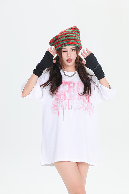 Стильная белая футболка KIRIN STRANGE с принтом и подтеками