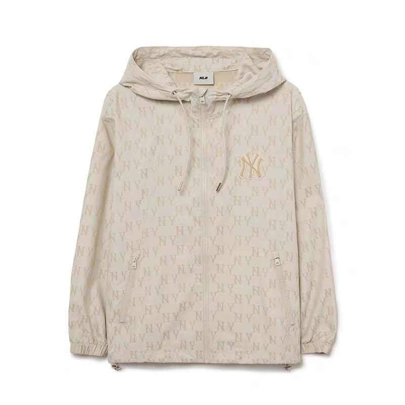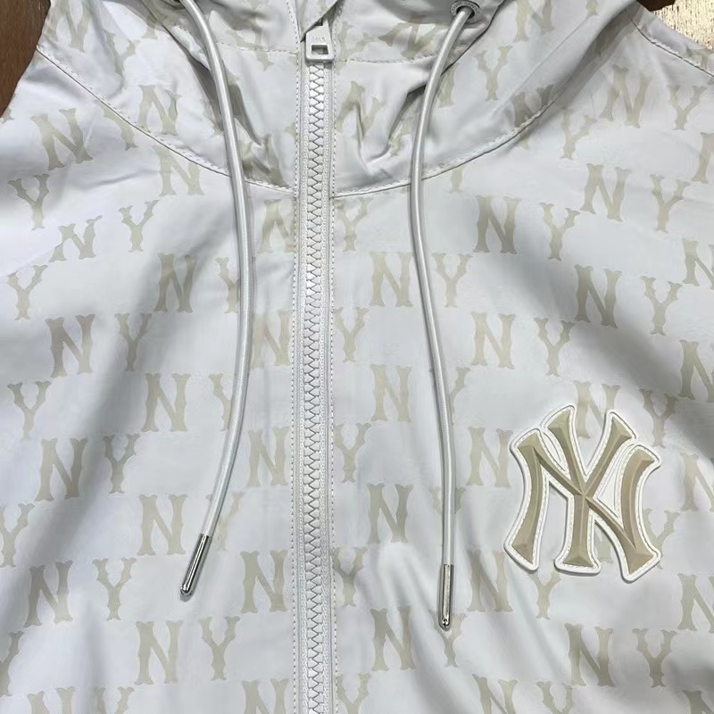 Стильная белая на молнии ветровка MLB с принтом и капюшоном