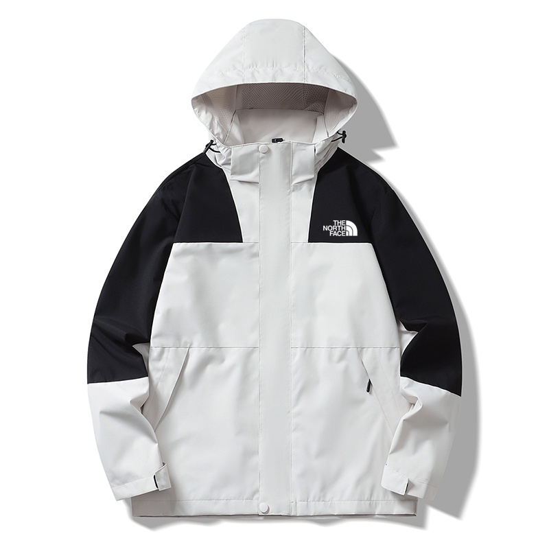 Стильная белая ветровка с чёрными рукавами и логотипом The North Face