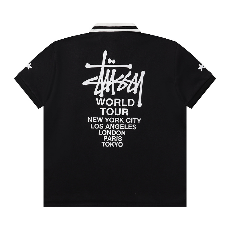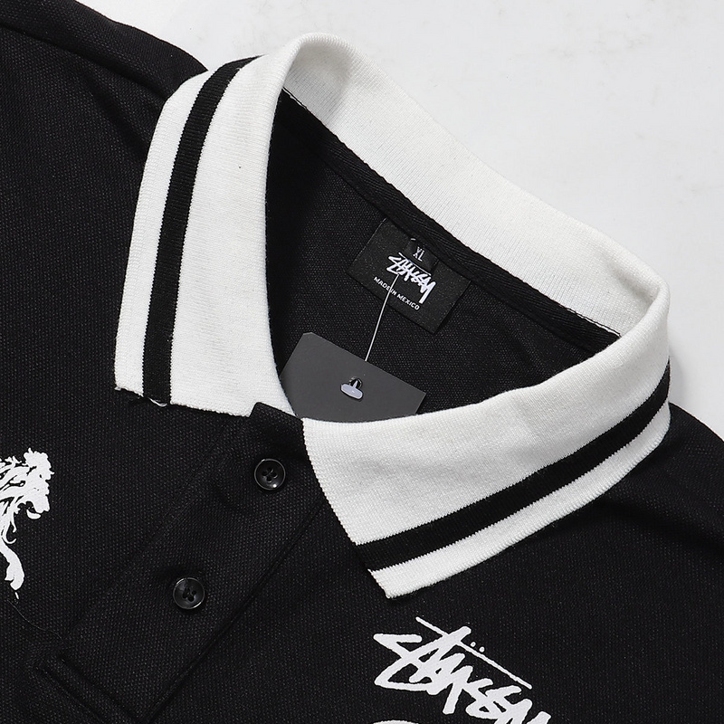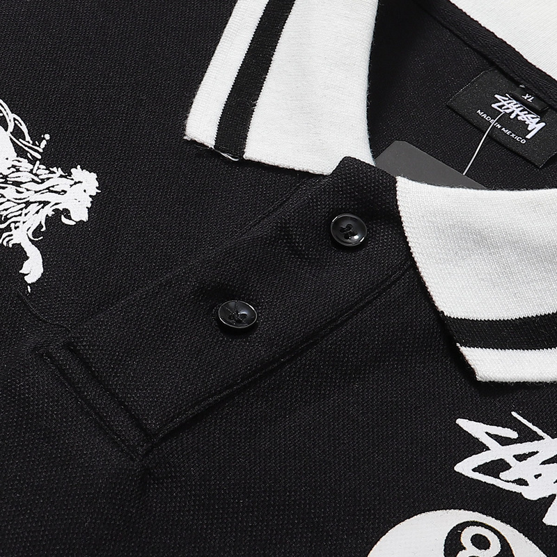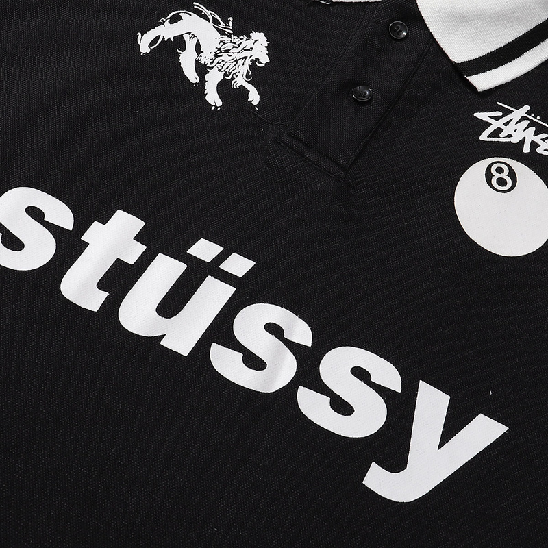 Стильная чёрная футболка поло Stussy с отложным воротником