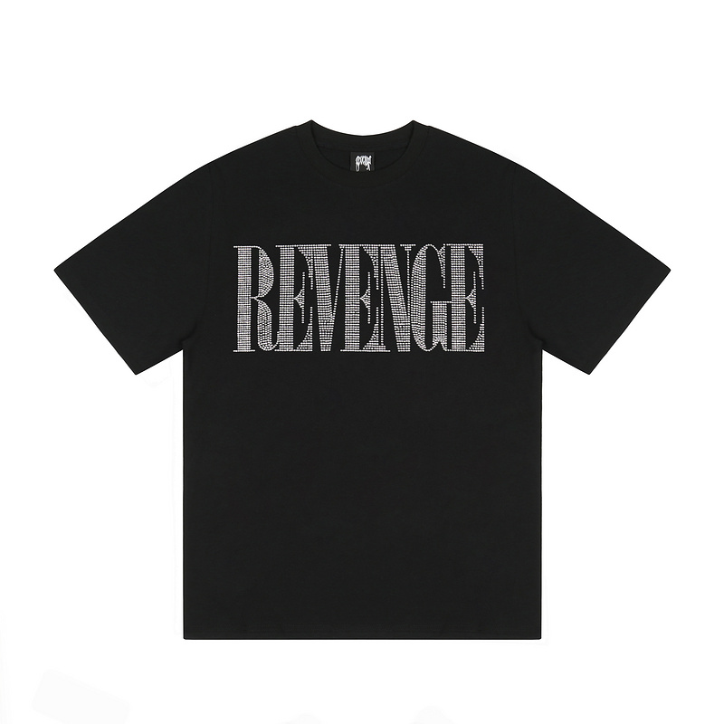 Стильная черная футболка Revenge с логотипом из ярких страз