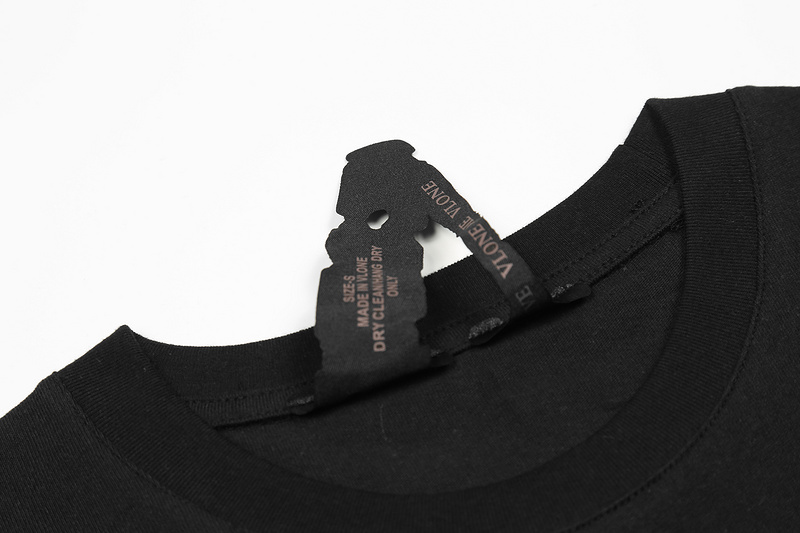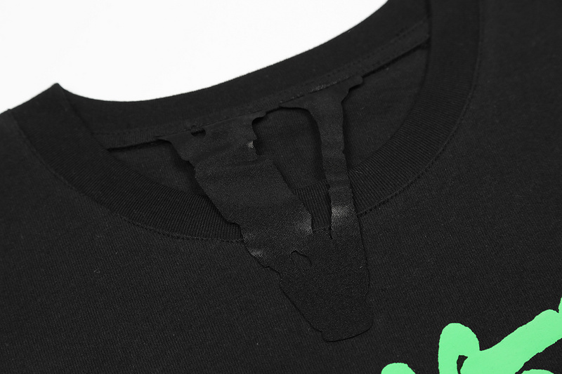 Стильная чёрная футболка с ярким принтом на груди и спине VLONE