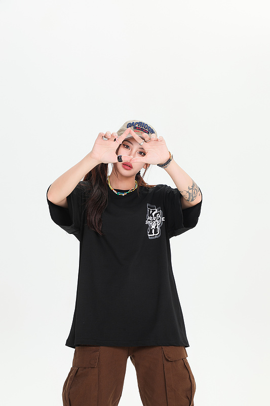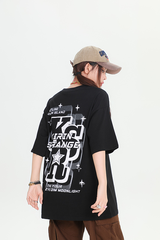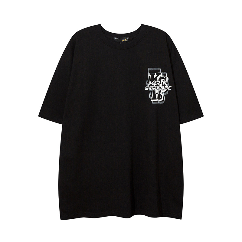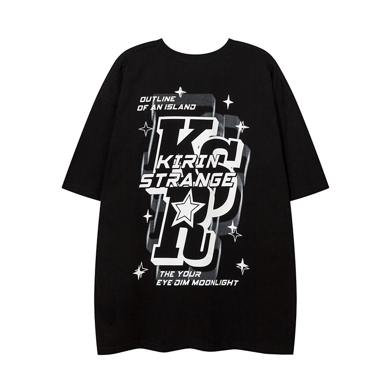 Стильная черного цвета футболка KIRIN STRANGE с белыми рисунками