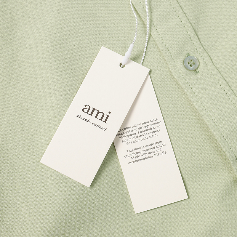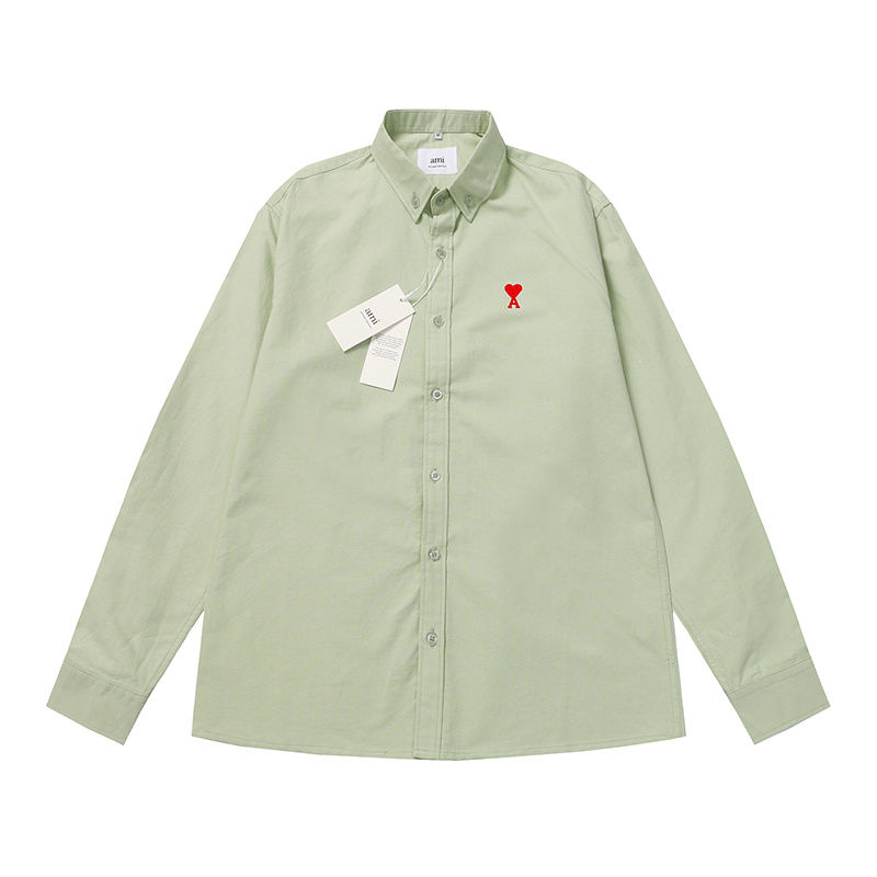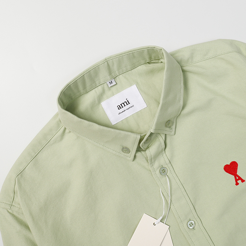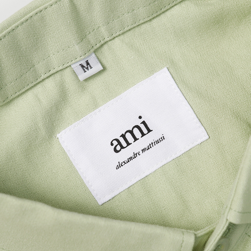 Стильная оливковая AMI рубашка прямого фасона с воротником стойка