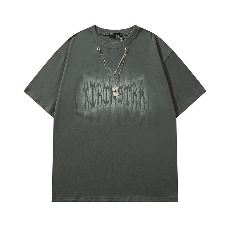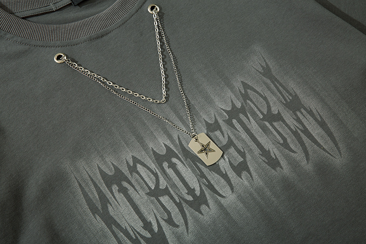 Стильная оливковая футболка KIRIN STRANGE с подвеской и принтом